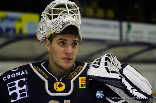 Remo wore this mask during the 2013/14 season with the SCL Tigers, and the beginning of the 2014/15 season with the Chaux-de-Fonds HC.